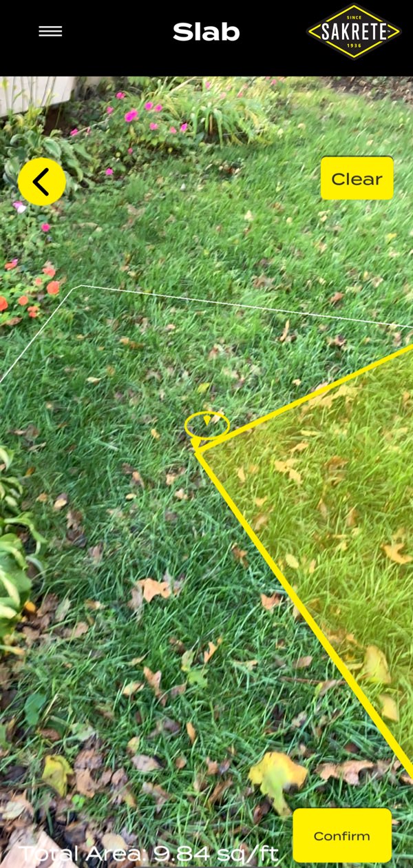 Measure your area with advanced augmented reality and skip all those tedious calculations. Using your smartphone’s camera, the app will prompt you to set your project’s edge points, allowing you to quickly measure any job no matter the shape or size. Once you have measured your project, the total area size will populate in the bottom left-hand corner. Confirm this measurement and identify the depth of the project to see your total volume.