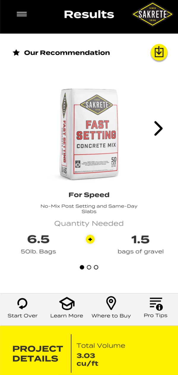 Just because it’s for pros, doesn’t mean it can’t be easy. The Sakrete App provides recommended products as well as how many concrete bags you will need for that specific project. Need help finding the closest store to your job site? The Sakrete App also shows you where to buy your concrete, to help you get the job done as quickly as possible.
